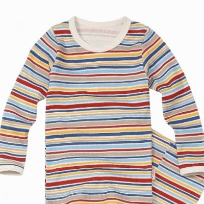純棉長袖居家服(深紅間條)