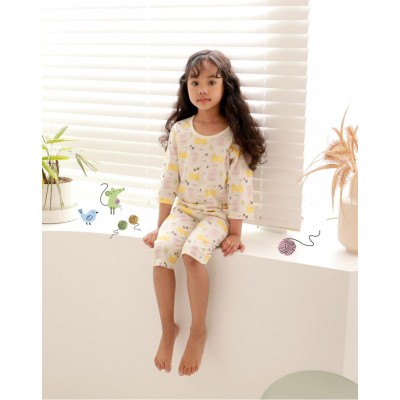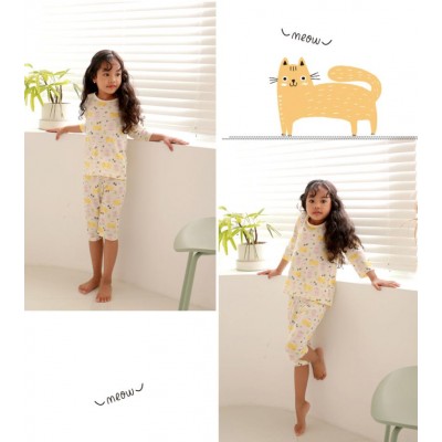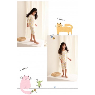 韓國七分袖女童居家服--Pastel Meow