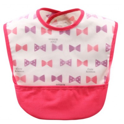 日本防水幼兒魔術貼飯衣 (無袖--小蝴蝶結紅色)