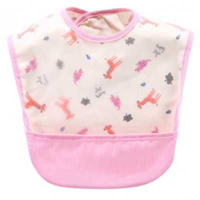 日本防水幼兒魔術貼飯衣 (無袖 -- 小動物粉色)