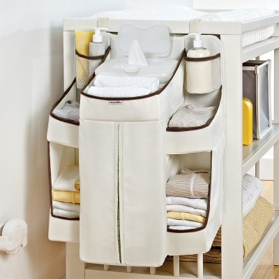 這個方便的一體化懸掛工具擁有大量的存儲空間,幫助您組織換尿布時的用品, 它可以附加到梳妝台,桌子或門。