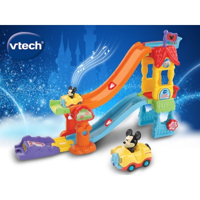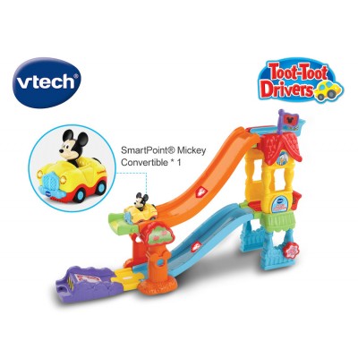 小賽車手可以重新佈置賽道,創建雙賽道,特技賽道或超級賽道!帶有Mickey Mouse的酷炫敞篷車隨附在敞篷車上,可將車仔放置在兩個SmartPoint發射器上,按Mickey收聽有趣的樂句,短調和聲音, 車頭燈亦會閃爍。借助VTech的嘟嘟車司機迪斯尼米奇的妙妙屋,盡享歡樂!您的小賽車手可以重新排列賽道,從而在遊戲過程中創建雙賽道,特技賽道或超級賽道,並加快速度!米奇老鼠(Mickey Mouse)的酷炫敞篷跑車配有完整的遊戲套裝。米奇的敞篷車具有3首單曲和6首生動活潑的旋律。鼓勵語言發展,富有想像力的遊戲並幫助發展基本的運動技能。
