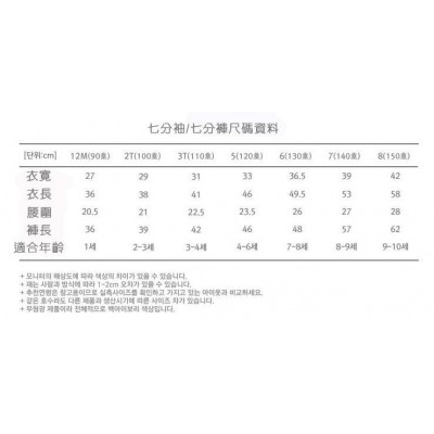 100 碼 - 衣長: 39.5cm, 衣寛(單邊): 29cm, 腰圍(單邊) 20.5cm, 褲長 39cm (適合年齡: 24 M)