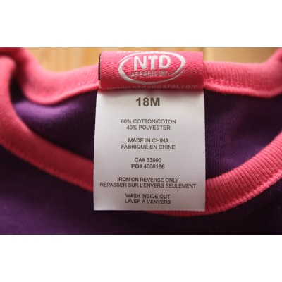 出口歐洲貨, 60%棉, 40%纖維 尺碼: 3M 肩寬約19.5cm 胸闊約22cm x2 衣長約34cm 袖長約8cm 6M 肩寬約20cm 胸闊約23cm x2 衣長約37cm 袖長約8cm 9M 肩寬約21cm 胸闊約24cm x2 衣長約38.5cm 袖長約8.5cm 12M 肩寬約22cm 胸闊約25cm x2 衣長約39.5cm 袖長約9cm 18M 肩寬約23cm 胸闊約27cm x2 衣長約42cm 袖長約9cm 24M 肩寬約24cm 胸闊約28cm x2 衣長約44.5cm 袖長約9cm