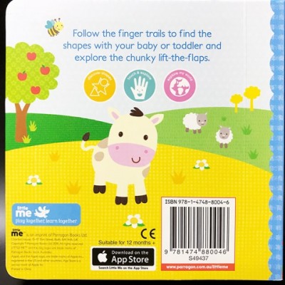 Lift-the-flap Shapes透過 Trace and find , 俾BB用手指沿著書內嘅凹凸坑紋, 搵出隱藏起來嘅小動物, 辨認唔同嘅顏色同形狀。書內嘅凹凸坑紋可以刺激觸覺, 又可以滿足BB平日東抓西抓咩都想摸下嘅好奇心, 吸引閱讀, 書內顏色鮮明嘅插圖亦可以刺激BB視覺。