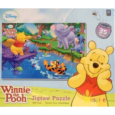 Disney Winnie the Pooh Jigsaw Puzzle EVA Foam (小熊維尼35片軟墊拼圖) 其所用的物料不是一般紙質, 而是選用優質EVA軟身材料, 拼圖厚度達5mm, 每塊拼圖尺寸在50mm x 50mm 以上, 專為小朋友的小手而設計。