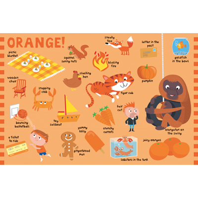- 內容以日常生活顏色和其對應單詞,為幼兒打開學習大門