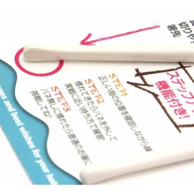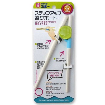 第一階段筷子閉合後放手會自動彈開, 寶寶只需要專注夾起食物動作; 第二階段媽媽可把彈弓扣拆除, 讓寶寶自己運用手指打開或閉合筷子; 第三階段連中間的連接件都可以折除, 小朋友可以當普通筷子使用。