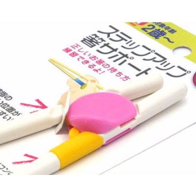 第一階段筷子閉合後放手會自動彈開, 寶寶只需要專注夾起食物動作; 第二階段媽媽可把彈弓扣拆除, 讓寶寶自己運用手指打開或閉合筷子; 第三階段連中間的連接件都可以折除, 小朋友可以當普通筷子使用。
