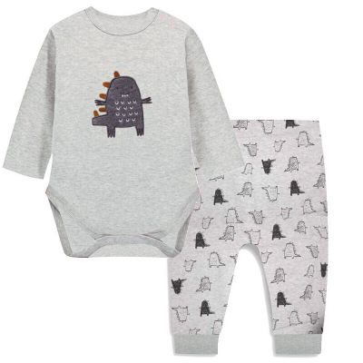 純棉嬰兒長袖夾衣褲仔套裝 - 灰色小恐龍 (男裝)