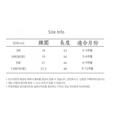 腰圍:  21cm, 褲長 46cm (適合年齡: 6-9M)