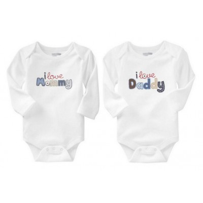 超可愛I Love Mommy & Daddy爬行夾衣, 全棉質料, 非常舒服耐用, 面層是繡花字體 (不是印花喔!), 寶寶穿起後, 一定冧死爸爸媽媽呢~~!!!
