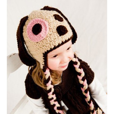 可愛嬰兒手鈎冷帽 - 粉色小狗