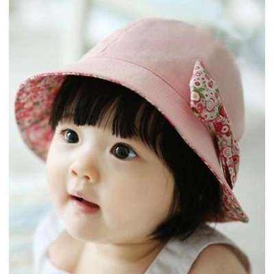 雙面設計, 可遮擋太陽光......一面是粉紅色, 一面是碎彩花花布,適合BB因應不同場合時佩戴, 另備有兩個蝴蝶結 一個纯色另一個又係花花, 媽媽可以在不同場合時 Mix and Match 一下~